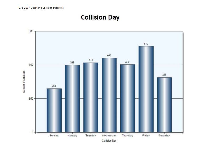 Data also showed September being the busiest month for crashes with 286 collisions reported. More crashes — 510 — occurred on Fridays than on any other day of the week last year.
