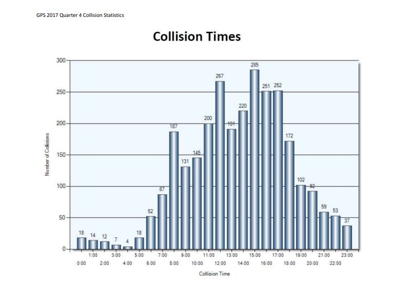 Broken down even more, the 3 p.m. hour saw the most crashes in Guelph in 2017 with 285.