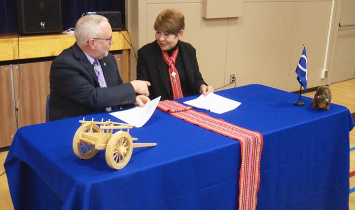 The partnership between the school division and the Central Urban Métis Federation Inc. (CUMFI) was formalized during a ceremony at Westmount Community School.