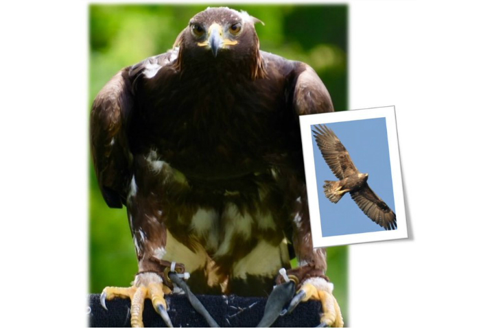 The eagle, known as Riff Raff, is brown with white flecks, 76 centimetres and weighs six kilograms.