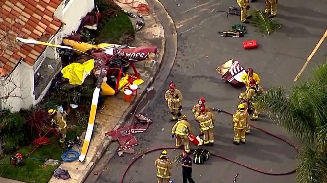 The Federal Aviation Administration says the helicopter had taken off from John Wayne Airport. The airport is about a mile from the crash site.