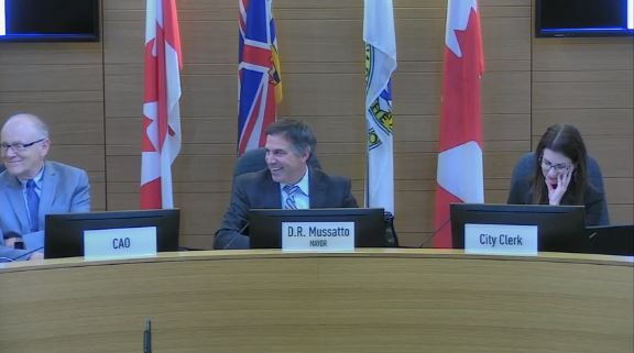 In the video of the meeting, one councillor tells Mussatto “careful.” Some — including the mayor — laughed, while others looked down.