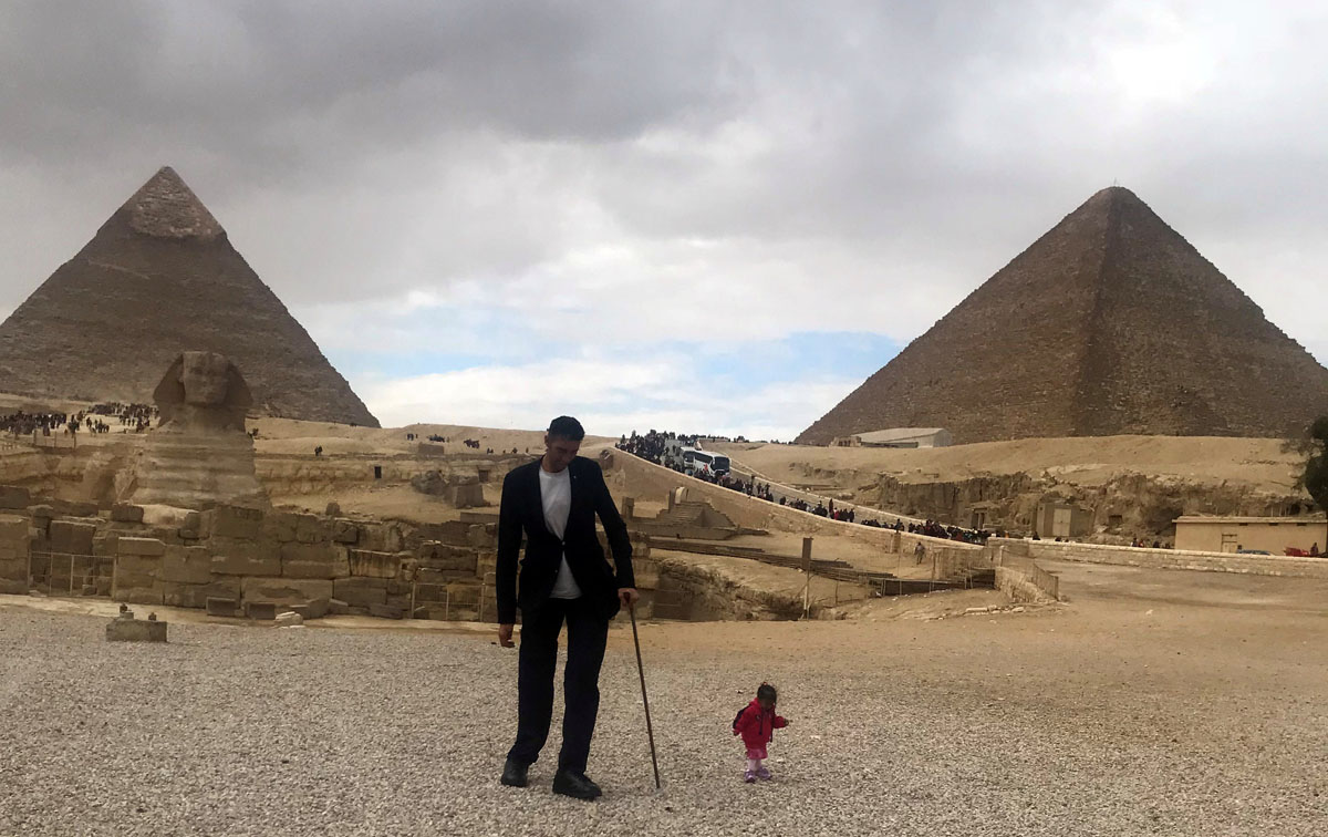 The world’s tallest man, Sultan Kosen, and the shortest woman, Jyoti Amge, visited Egypt’s Giza Pyramids on Friday, as part of a campaign which aims to revive the country’s struggling tourism industry.