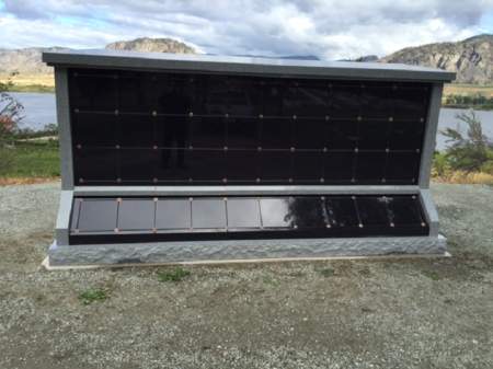 The municipality has brought in what’s called a columbarium with 40 spaces for cremated remains. The columbarium is granite on the outside with four levels of stacked compartments for storing urns.