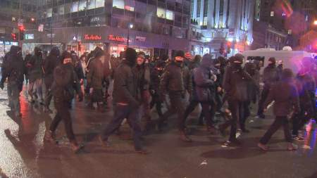 One day after an 18-year-old man was shot in Maniwaki, people gathered in Montreal to protest against police. The group of around 50 people began at Place Émilie-Gamelin and marched throughout downtown Montreal.