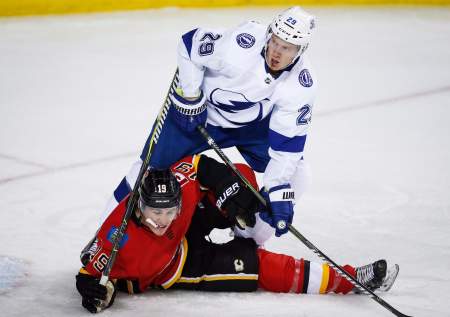 Down 4-3 after two periods, Tampa Bay tied it 12 seconds into the third when Killorn pounced on a loose puck near the Flames face-off dot, spun, and sent a backhander on net that slipped past Mike Smith.