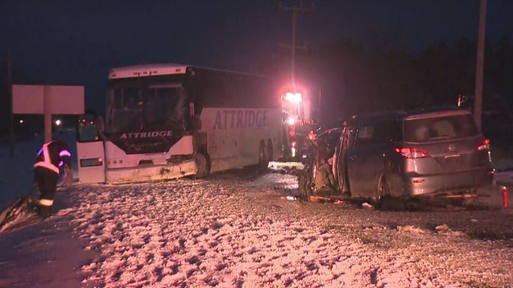 Emergency crews were called to Highway 26, north of Stayner, at around 1:50 p.m. Friday after receiving reports the van travelling northbound collided with the bus travelling southbound. Police said the van crossed the centre line for an undetermined reason.