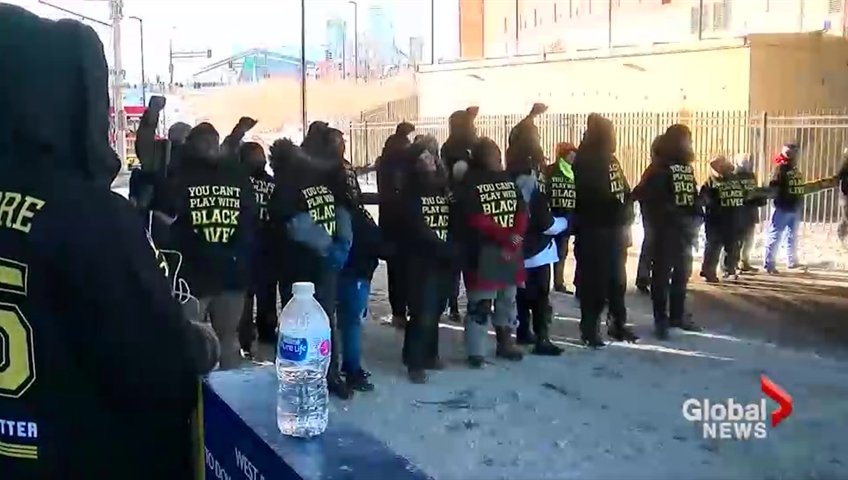 Chinyere Tutashinda, a spokeswoman for the activists, said they were protesting police brutality, as well as the light-rail lines being set aside solely for Super Bowl ticketholders on Sunday. Non-ticketholders had to use buses to get around the metro area instead.