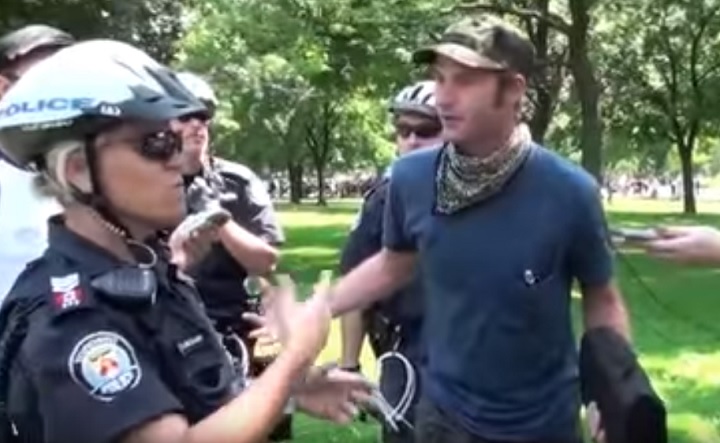 In an incident captured on video, Stewart says he went to Allan Gardens on the Friday afternoon of the summit weekend in June 2010. He says several officers demanded to search his bag as a condition of entry into the park. When he refused and tried to get to the protest, he alleges the officers “assaulted and battered him,” illegally searched his bag, and confiscated his swimming goggles.