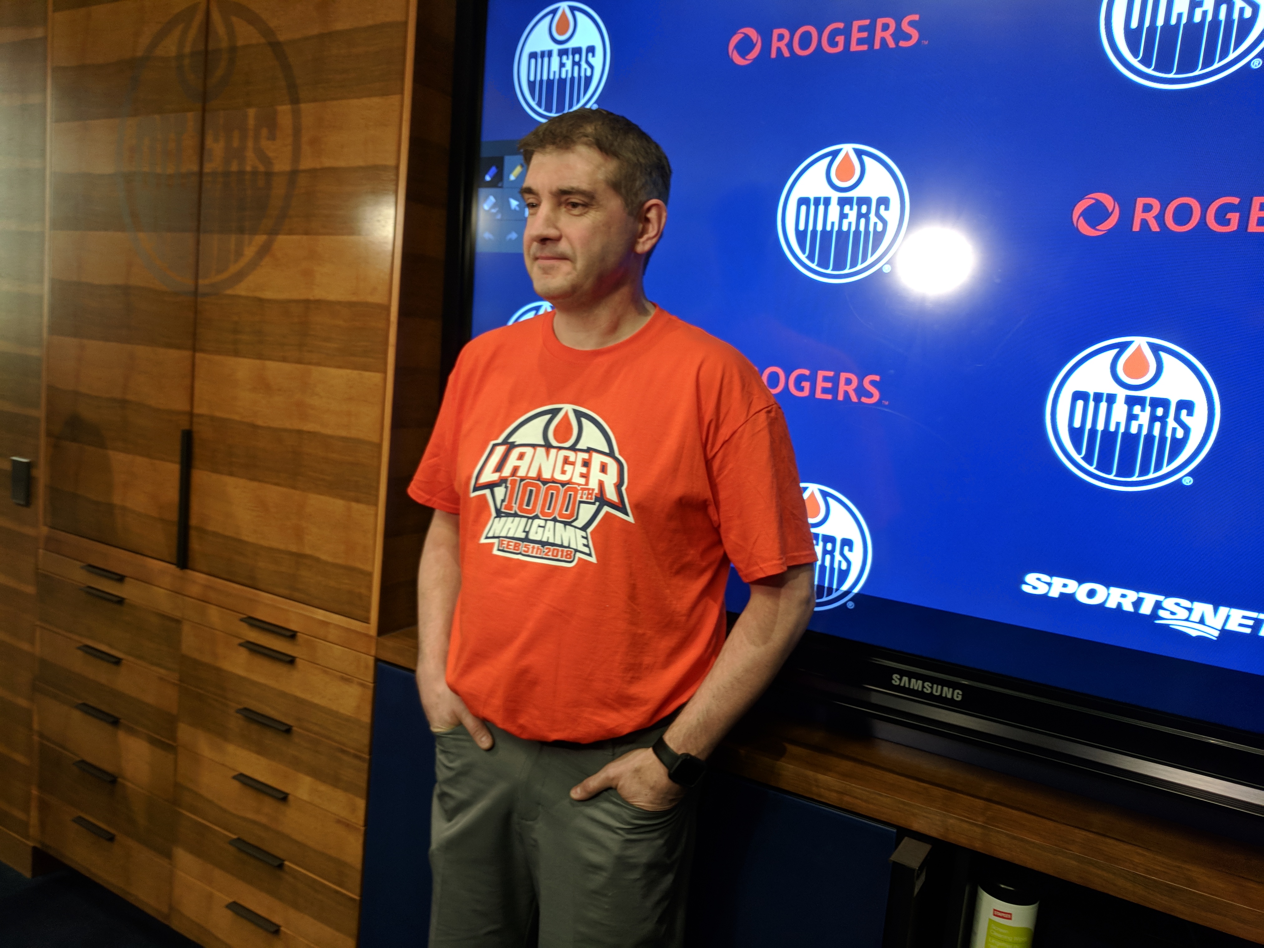 Edmonton Oilers head equipment manager Jeff Lang works his 1,000th NHL game on Monday night when the Oilers host Tampa Bay.