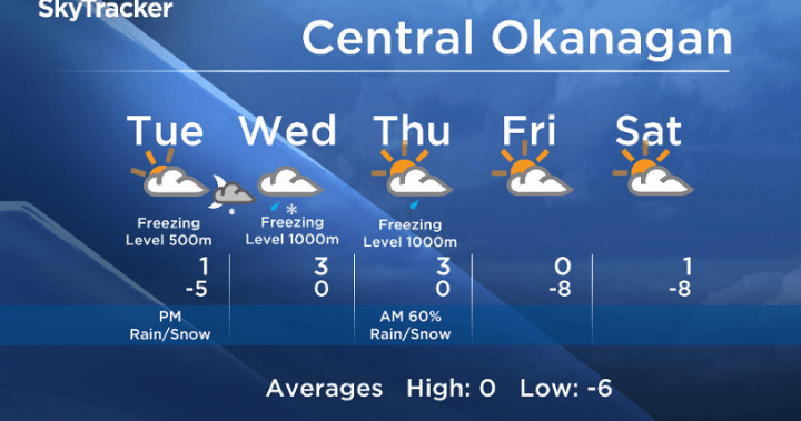 The South Okanagan and Boundary regions will see slightly higher freezing levels, with a better chance of either mixed precipitation or rain over the next couple of days.