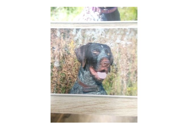 Police say the dog is an eight-year-old German Wirehair Pointer and responds to the names “Leo” and “Pisser.” He’s described as dark grey with brown patches and white flecks. The dog is also missing a chunk of his left ear flap.