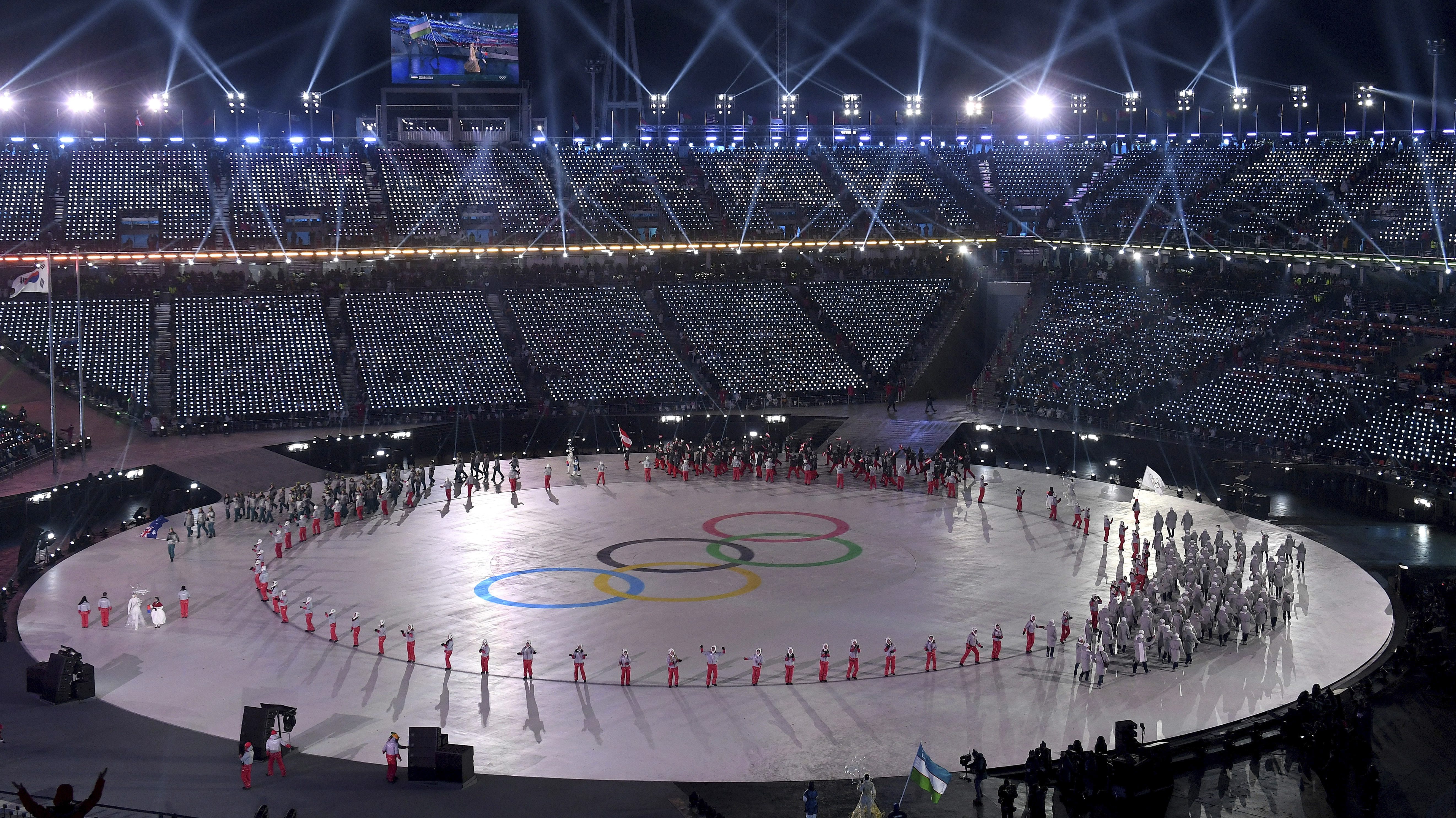 The opening ceremonies included 168 Russian athletes who marched under the “Olympic Athletes from Russia” banner, wearing neutral uniforms.