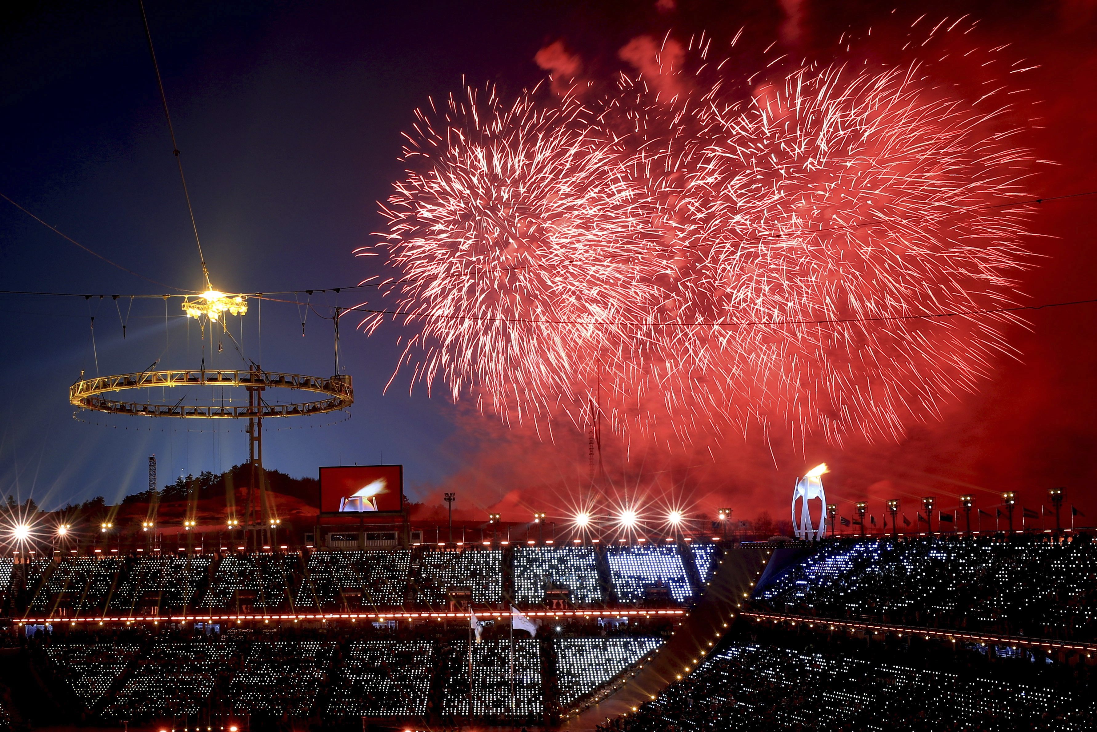 The opening ceremony capped off with a magnificent display of the lighting of the Olympic cauldron.