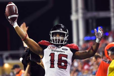In 93 games with the Stampeders, he made 417 catches for 5,555 yards and 27 touchdowns.