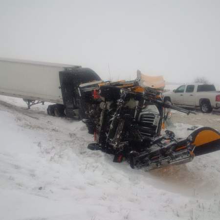 According to OPP, the impact resulted in the snow-removal vehicle entering the centre median and rolling onto its side.