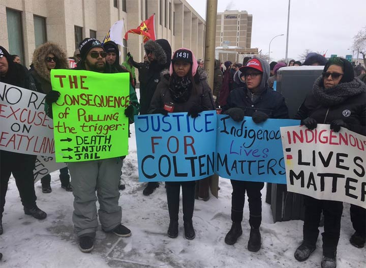 The emotions were raw at demonstrations across Canada on Saturday to protest the acquittal of a white Saskatchewan farmer in the shooting death of a young Indigenous man.