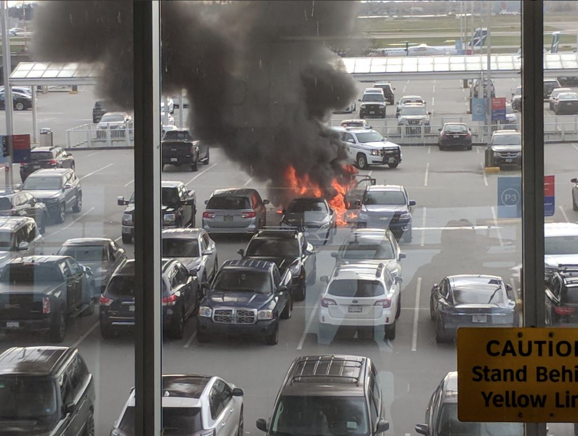 YVR officials confirm a vehicle is on fire and that fire crews are on scene.