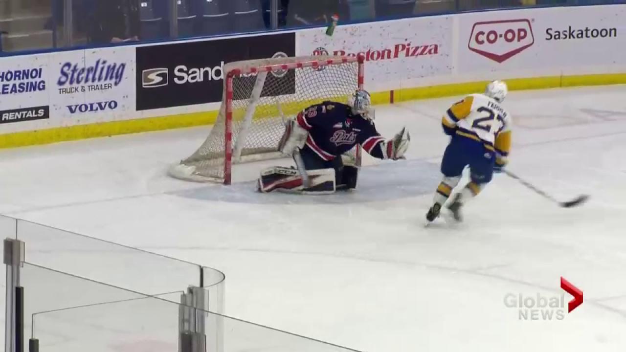 With the victory, Saskatoon (28-26-3) moved four points ahead of the Prince Albert Raiders (22-23-11) in the standings for the final playoff spot in the WHL Eastern Conference.