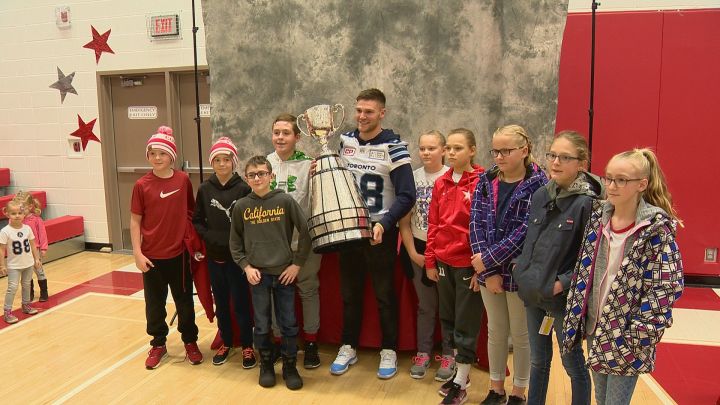 “As soon as I won and celebrations settled down, I wanted to make sure that this would be possible. I asked coach (Todd) Heggie after the game (Grey Cup) if I could bring it to the high school,” Ralph said.
