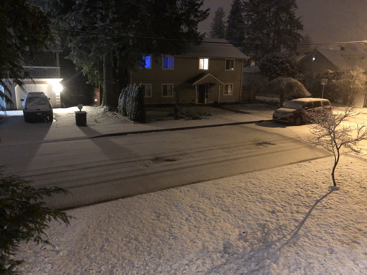 Here are some more images that showed the snow falling on the Vancouver area on Tuesday night: