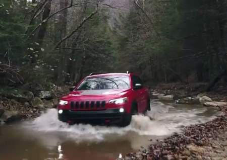 Fiat Chrysler is defending the ads but says there are no plans to run them again. It says the spot with the Cherokee was shot on a flooded county road and another with a Jeep Wrangler was filmed in a man-made lake with a man-made waterfall on private land.