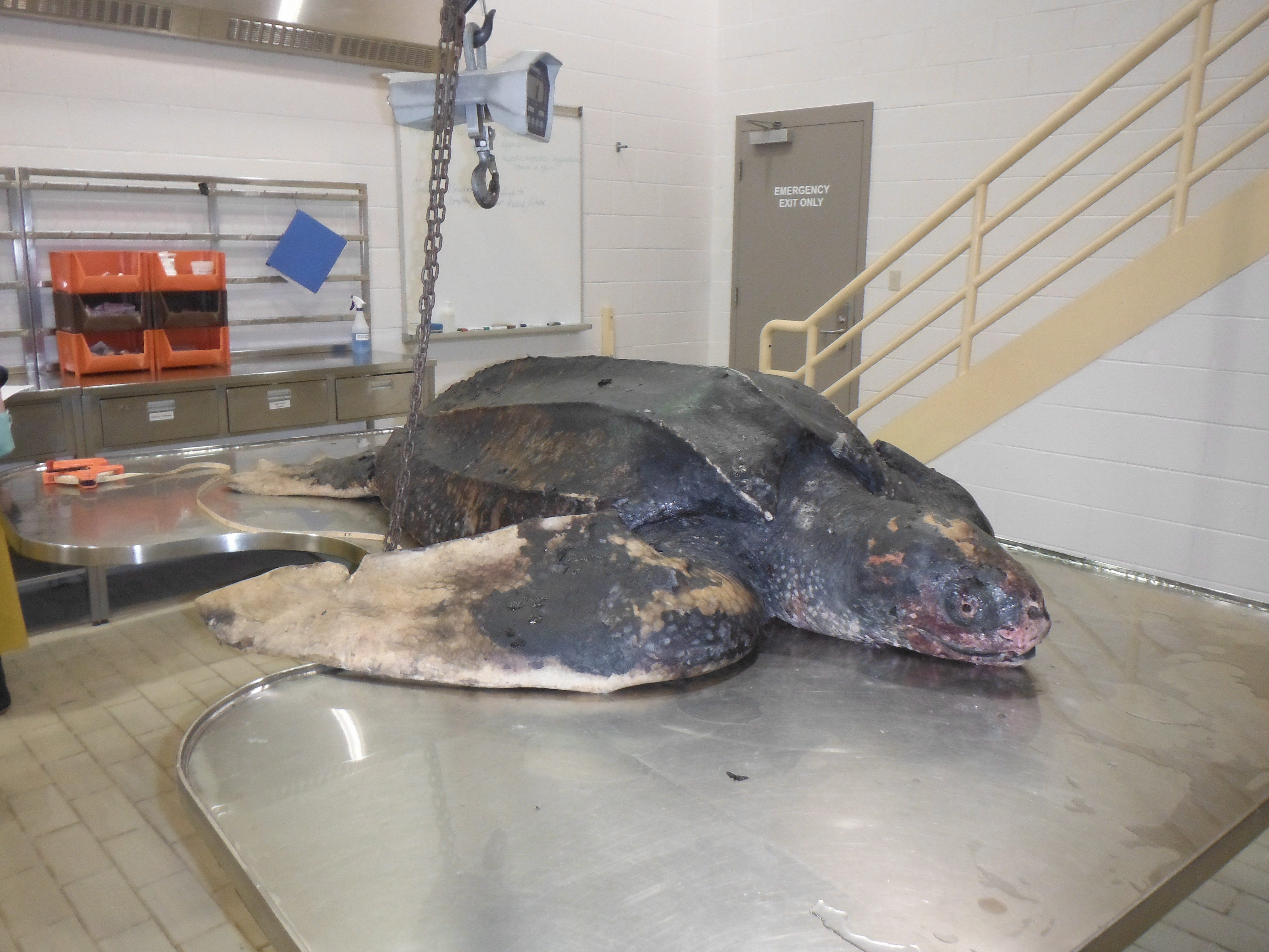 “It was probably alive pretty late into the year because of the (good) condition of the turtle’s carapace,” he said, referring to the turtle’s thin but tough layer of leather-like skin. The leatherback is the only sea turtle that lacks a hard shell.