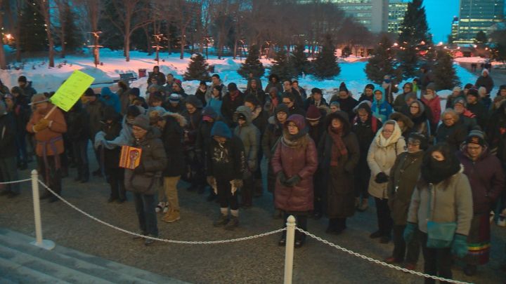 Watch below: On Feb. 10, 2018, Kim Smith filed this report in Edmonton where a rally was held after a Saskatchewan farmer was found not guilty on Friday in the death of an Indigenous man.