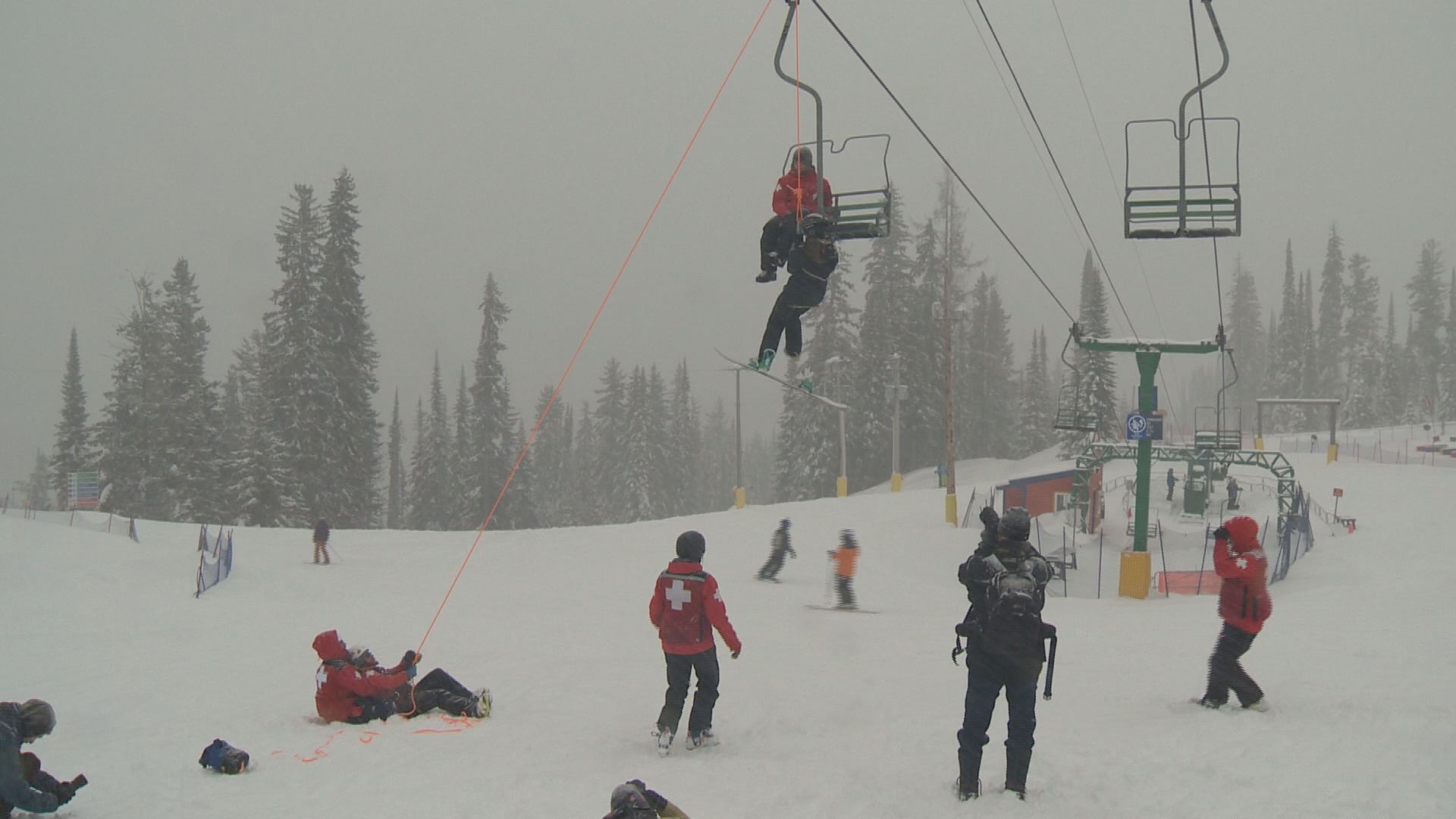 Ski patrol also showed how stranded skiers and snowboarders on the chairlift would be rescued.