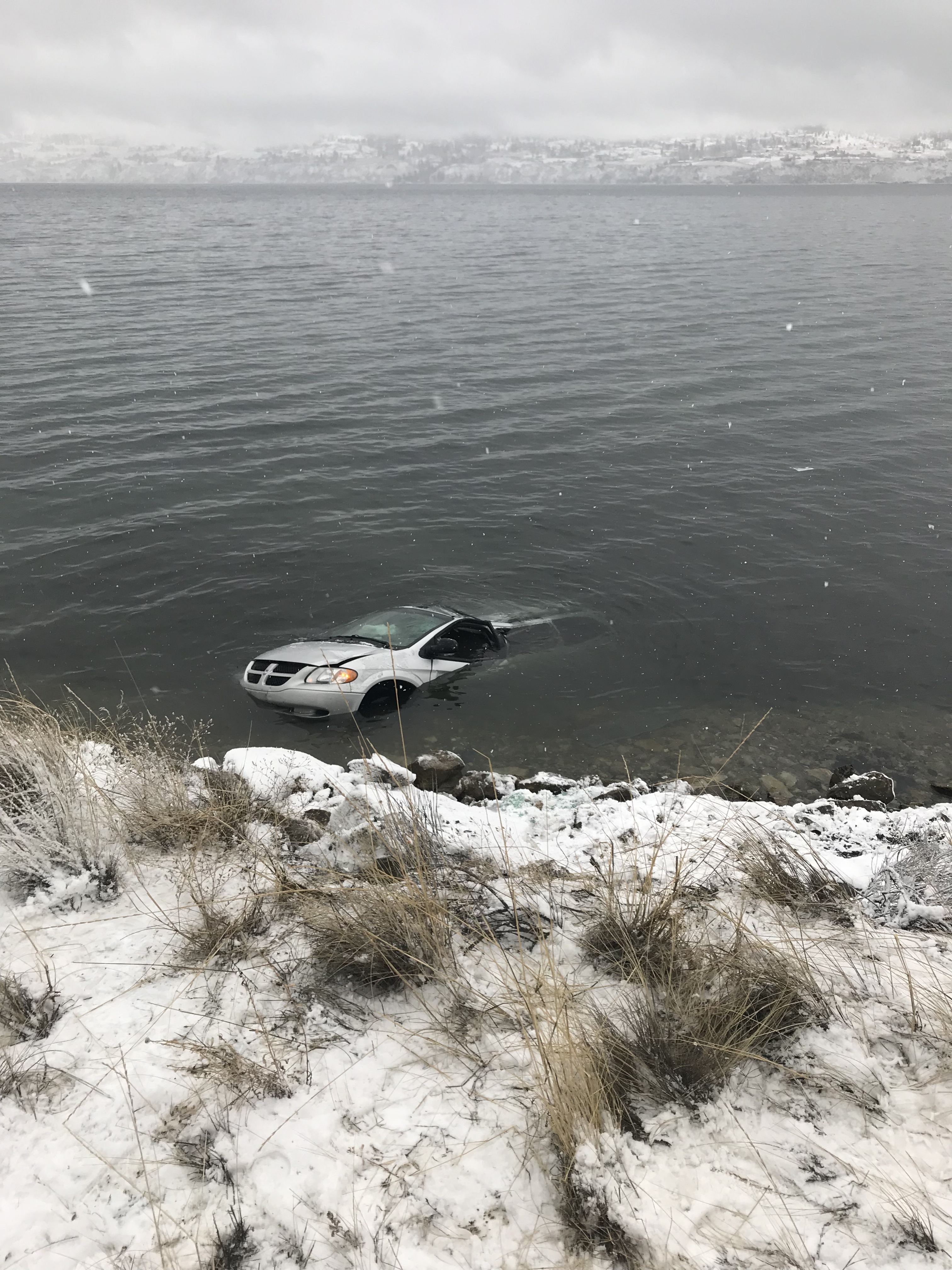 Chris Sayles was rounding the corner on his drive from Penticton to Kelowna when he saw a minivan quickly sinking into Okanagan Lake.