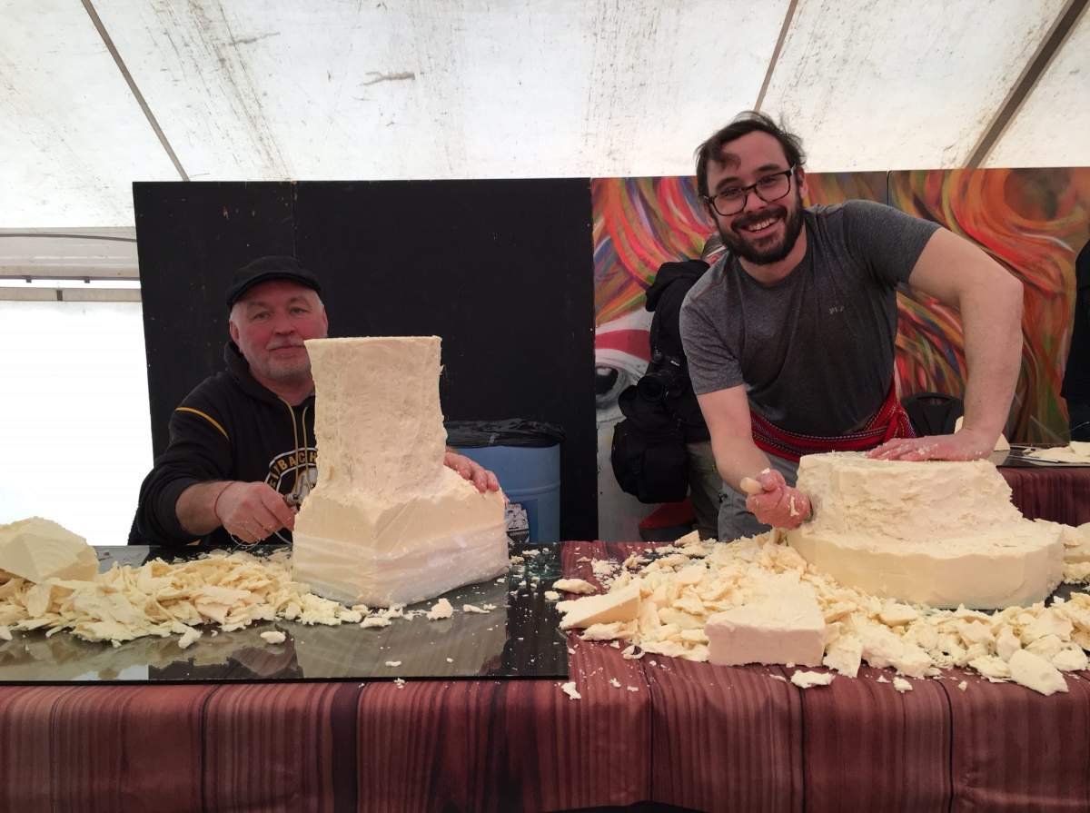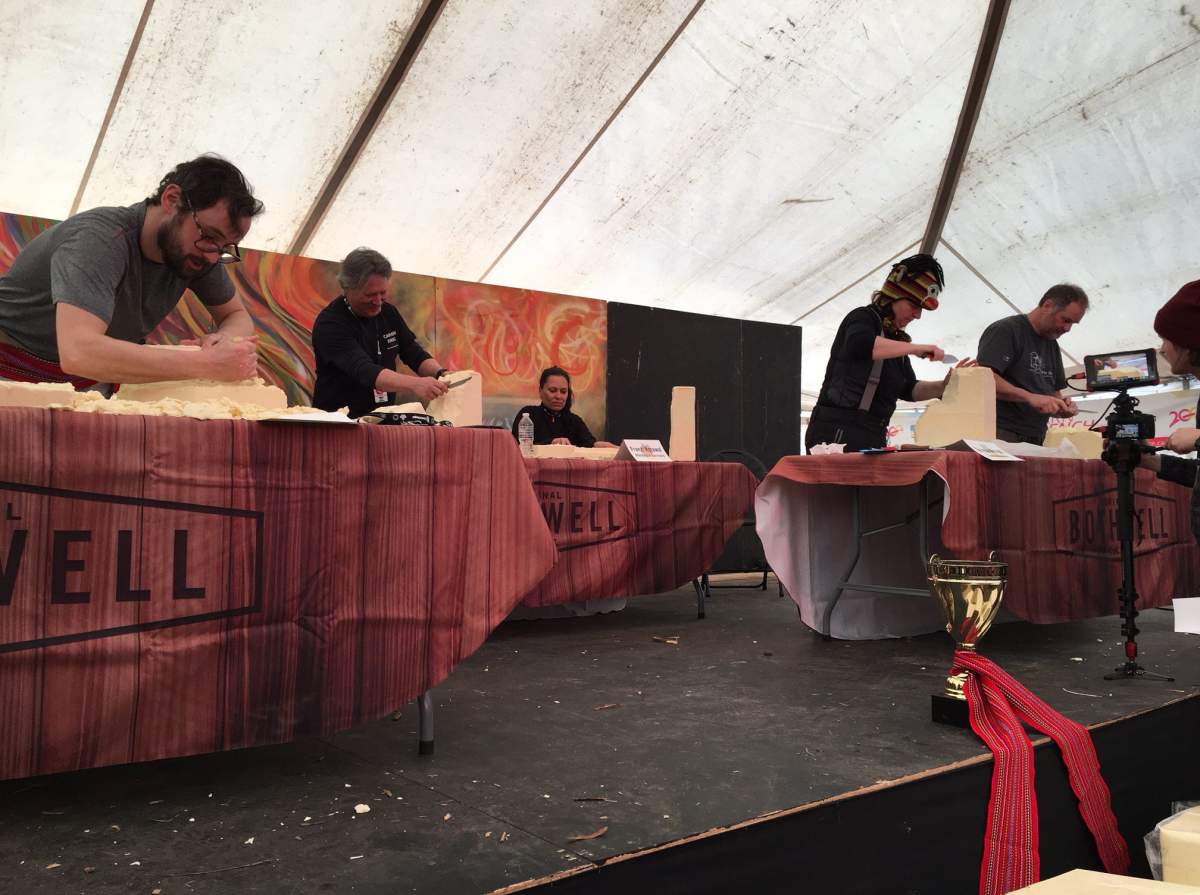 Families attending Festival on Sunday were treated to the first ever Cheese carving competition.