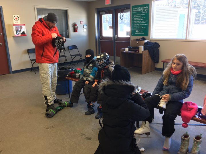 “We did a bit of sledding on the weekend already and we’re trying the (Clarence Downey Speed Skating) oval out for the first time,” said Kari Froehlich, who sped around the track with her husband and three kids on Monday afternoon.