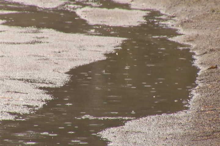 Because the ground can’t absorb the water, the melting snow eventually flows to the St. Lawrence River and Lake Ontario.