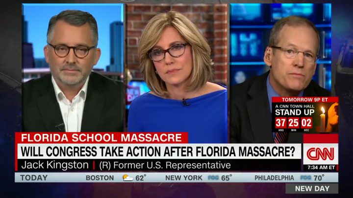 Former U.S. congressman Jack Kingston faced heat from a CNN host Tuesday, over a tweet that undermined students protesting for stronger gun control in the country.