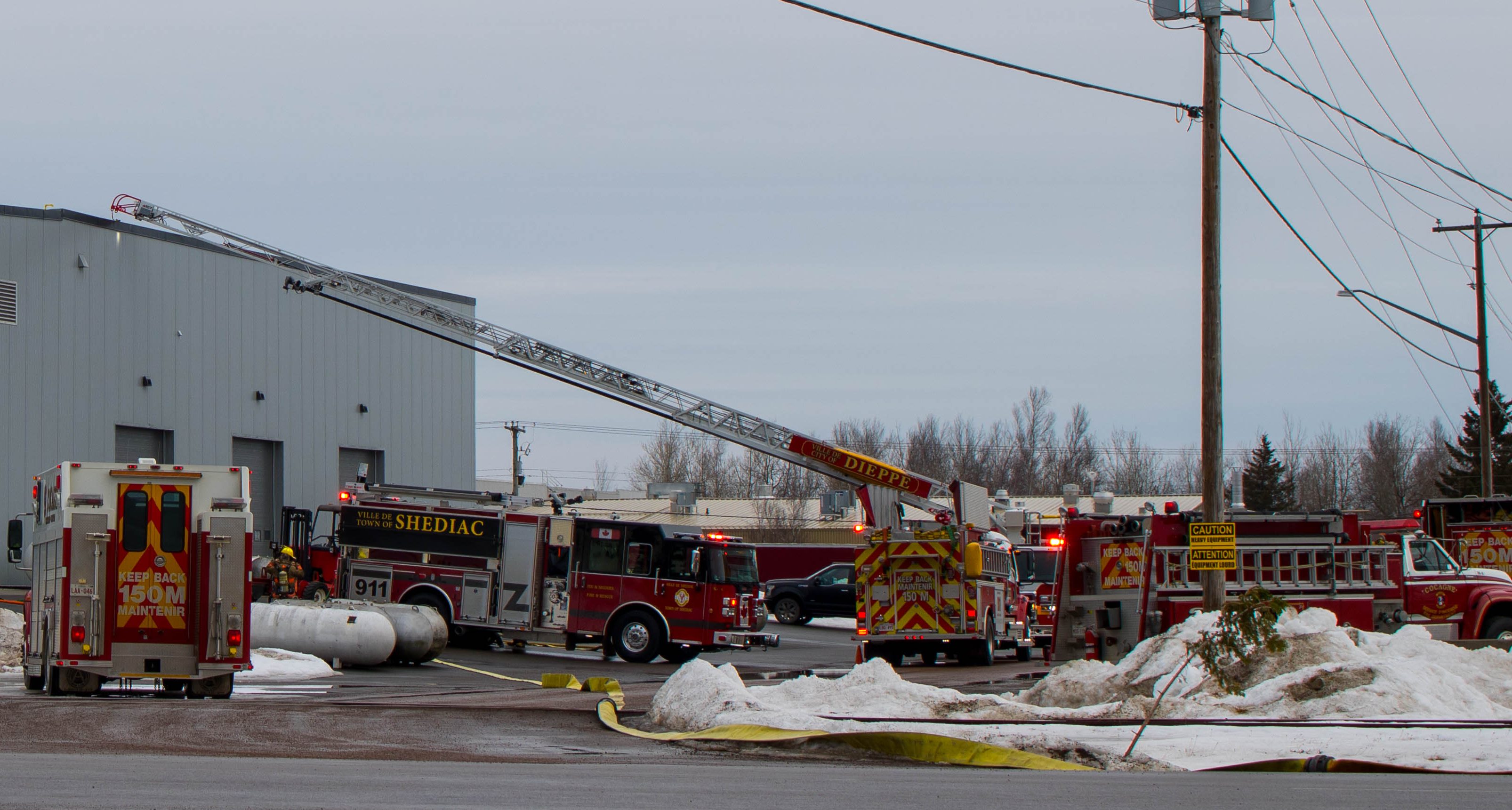 Multiple New Brunswick fire departments responded to a fire in the Shediac, N.B., industrial park on Tuesday morning.