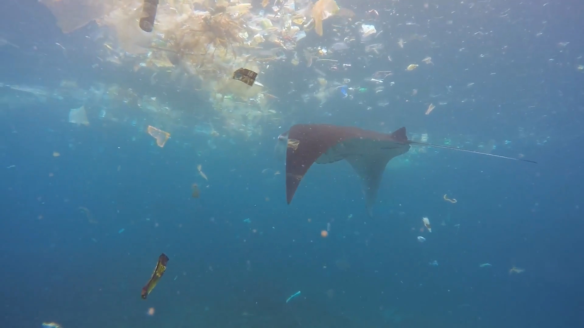 A video captured by a scuba diver in Nusa Lembongan, a small island off the southeast coast of Bali, shows manta rays swimming through hordes of trash when searching for food.