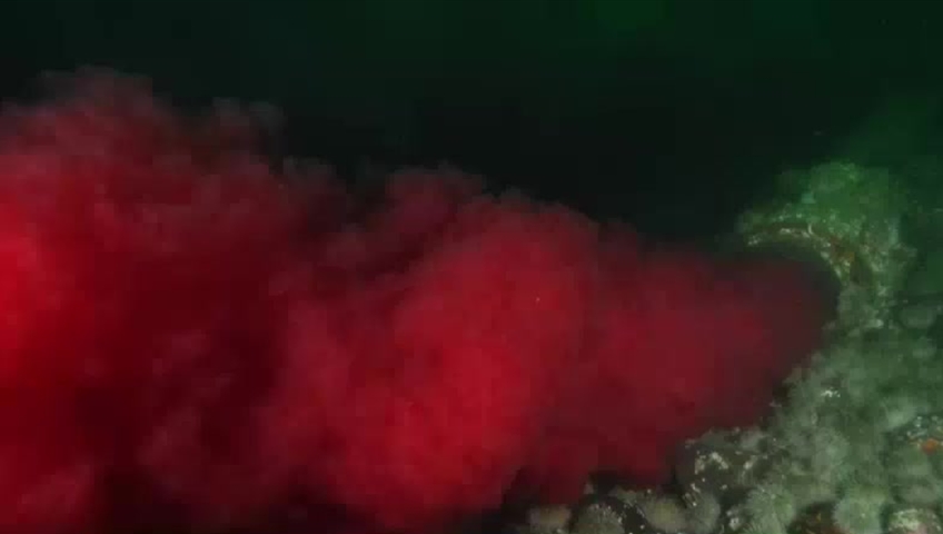 In November, filmmaker Tavish Campbell released footage of a blood-red cloud being discharged from a fish farm processing facility.