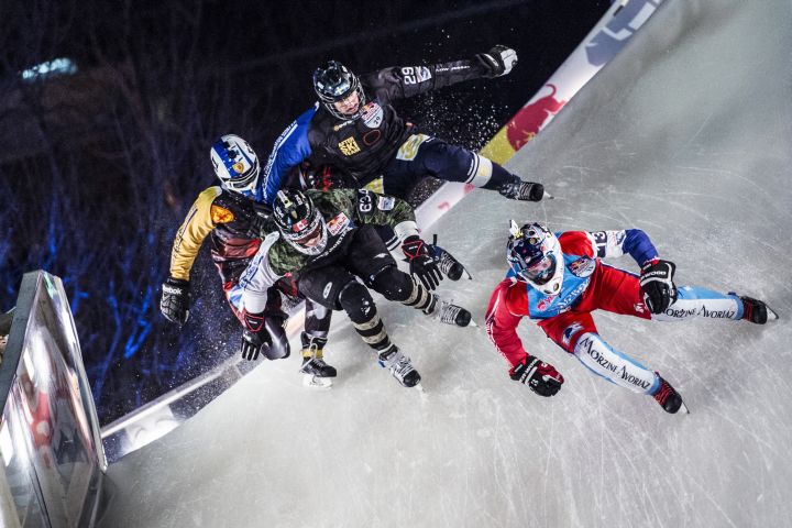 The Ice Cross Downhill World Championship Finale sees athletes on ice skates race down a track made of ice. Racers can reach speeds of over 60 kilometres per hour.