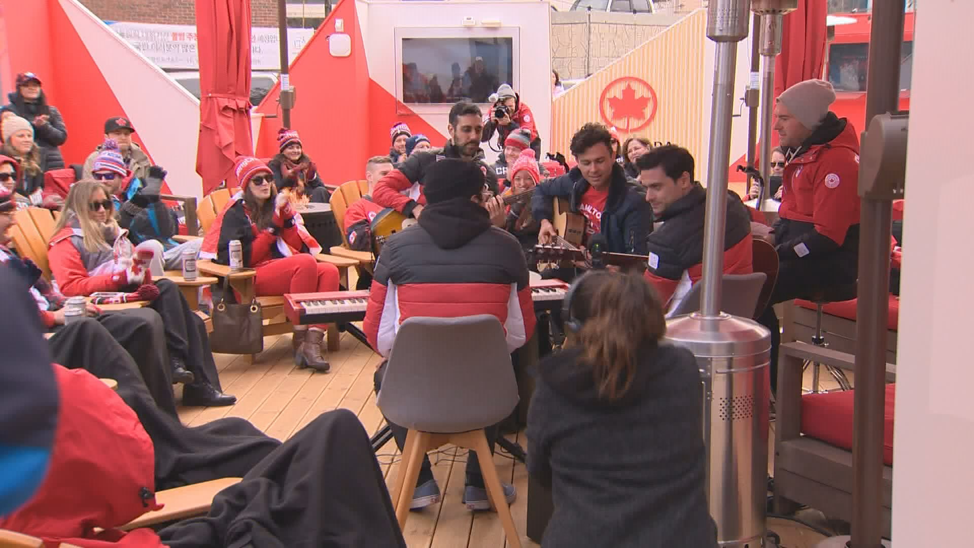 And it wasn’t their only performance for Canada House either, as the group took to the stage inside the building for an impromptu 90-minute set in front of hundreds, mixed in with a bit of karaoke with Olympic medallists. The women’s hockey team even took the stage to perform “Summer of ’69” by Bryan Adams.