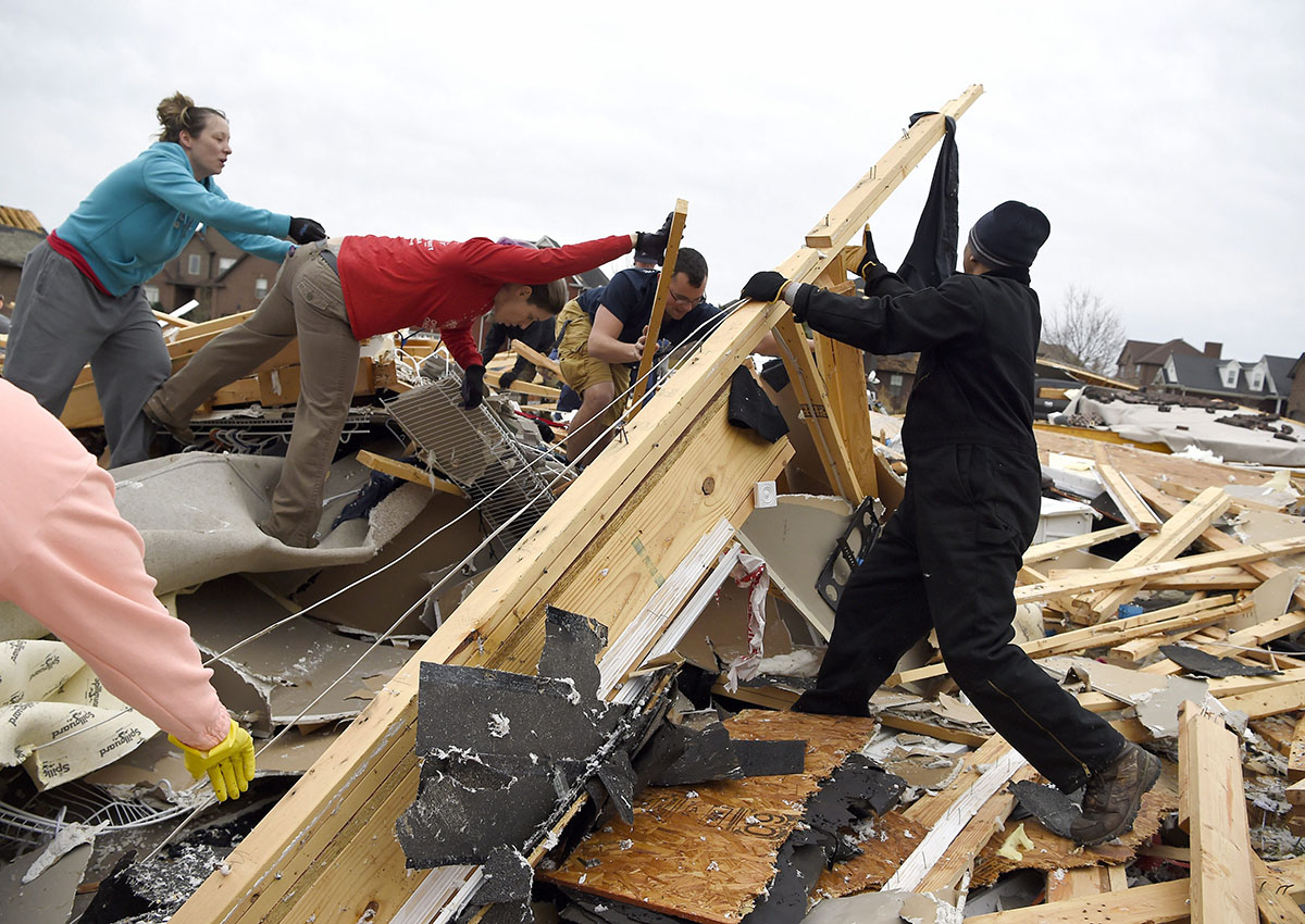 About 20 miles (32 kilometres) away, Dallas Jane Combs, 79, died after a suspected tornado destroyed her Adairville home earlier Saturday, the Logan County Sheriff’s Office told media outlets. Sheriff officials said Combs was inside the home when it collapsed on her. Combs was pronounced dead at the scene.