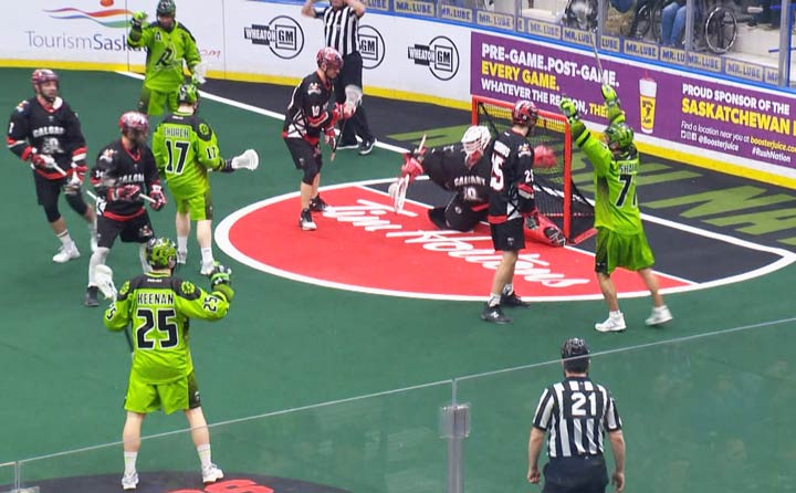 The Saskatchewan Rush downed the Calgary Roughnecks 10-6 in National Lacrosse League (NLL) action on Saturday at SaskTel Centre.