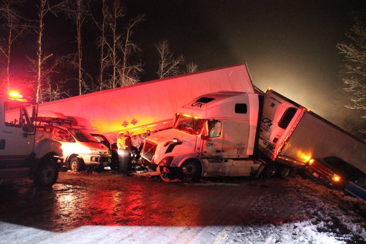 “It was a bit challenging with the weather conditions, roads were quite slippery, it was snowing, fairly heavily, and just the dynamics with the traffic flow in the area. Turned out there was two separate sites that we had to divide up into because of the roads being blocked from the vehicles involved.”