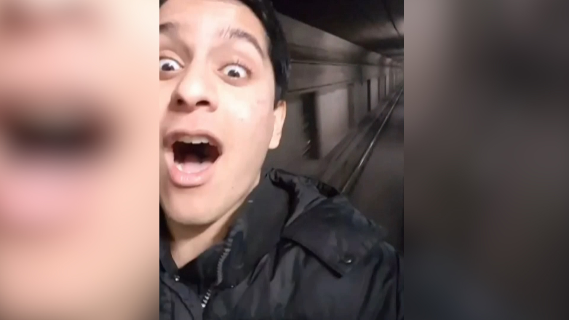 WATCH ABOVE: The TTC is investigating after a video surfaced online of a young man apparently riding on the back of a subway train while filming himself – Feb 26, 2018