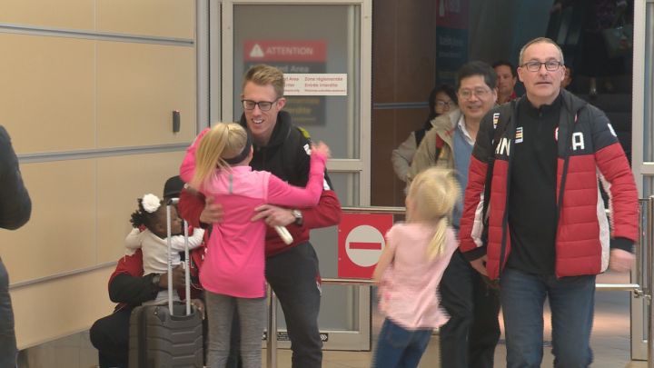 Kennedy said he was glad to see his kids at the airport following a “long three weeks” and that while a medal would have been nice, he is grateful for the experience.
