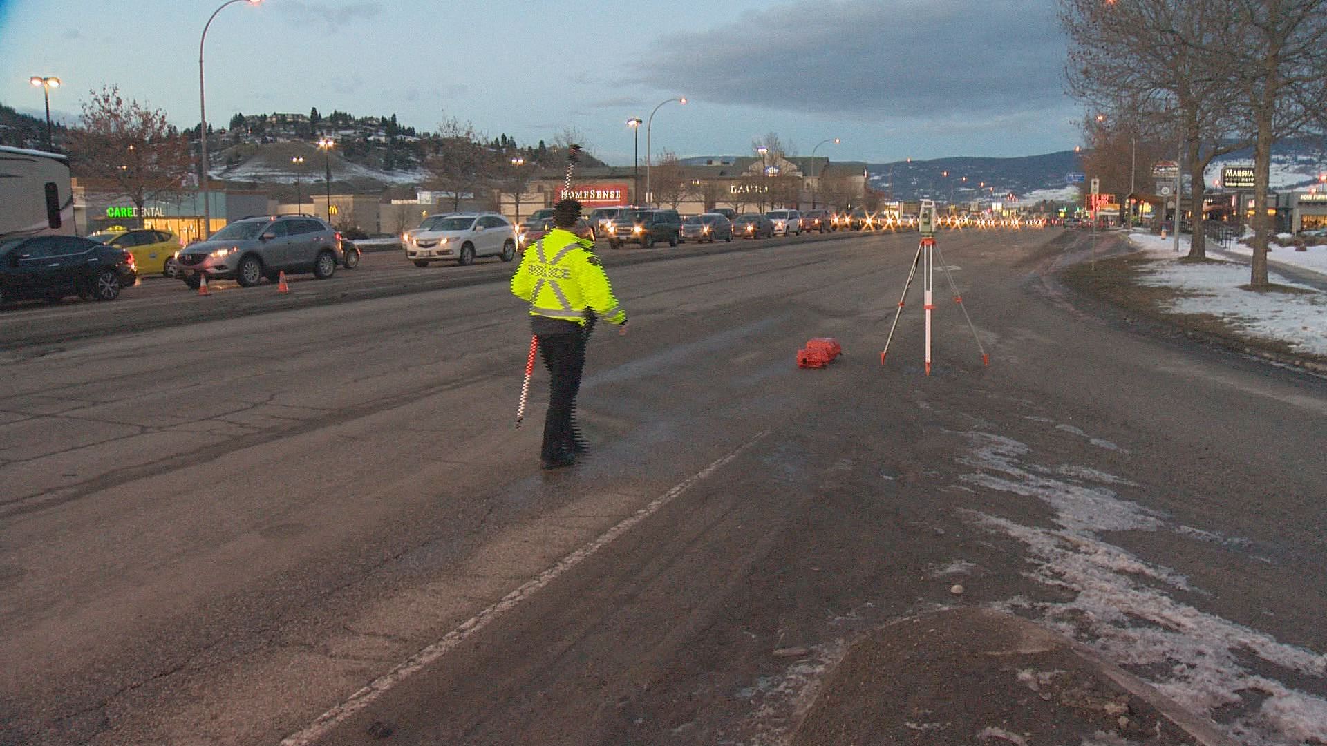 Harvey Ave. (Hwy 97) was partially closed during the evening commute through Kelowna Monday, as RCMP investigated a hit-and-run accident that took place earlier in the day.