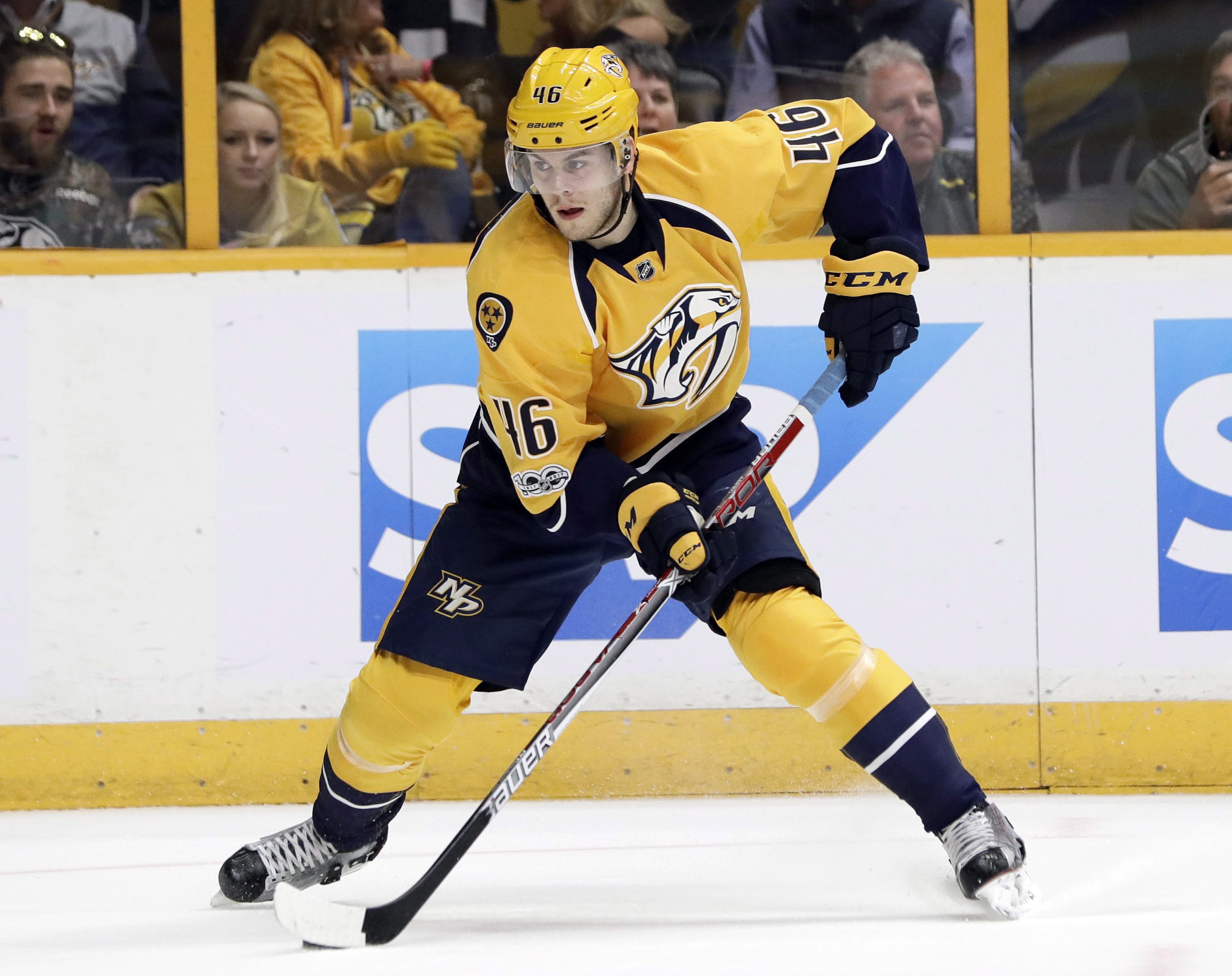 The Oilers acquired Aberg on Sunday in a trade with the Nashville Predators for forward Mark Letestu.