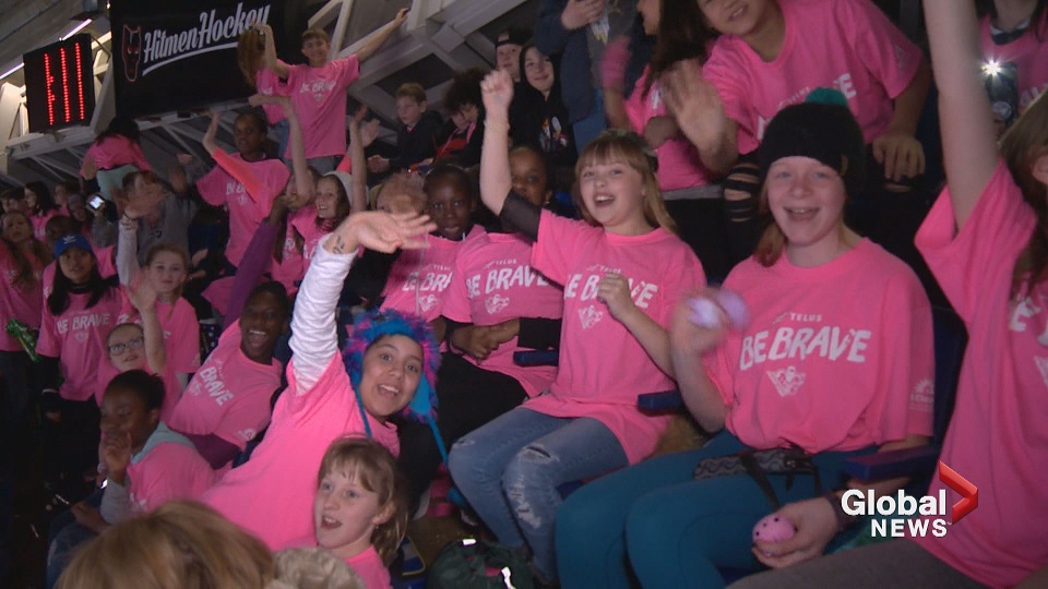 The young fans were there for the Western Hockey League “Be Brave” game, featuring the Calgary Hitmen hosting the Swift Current Broncos.