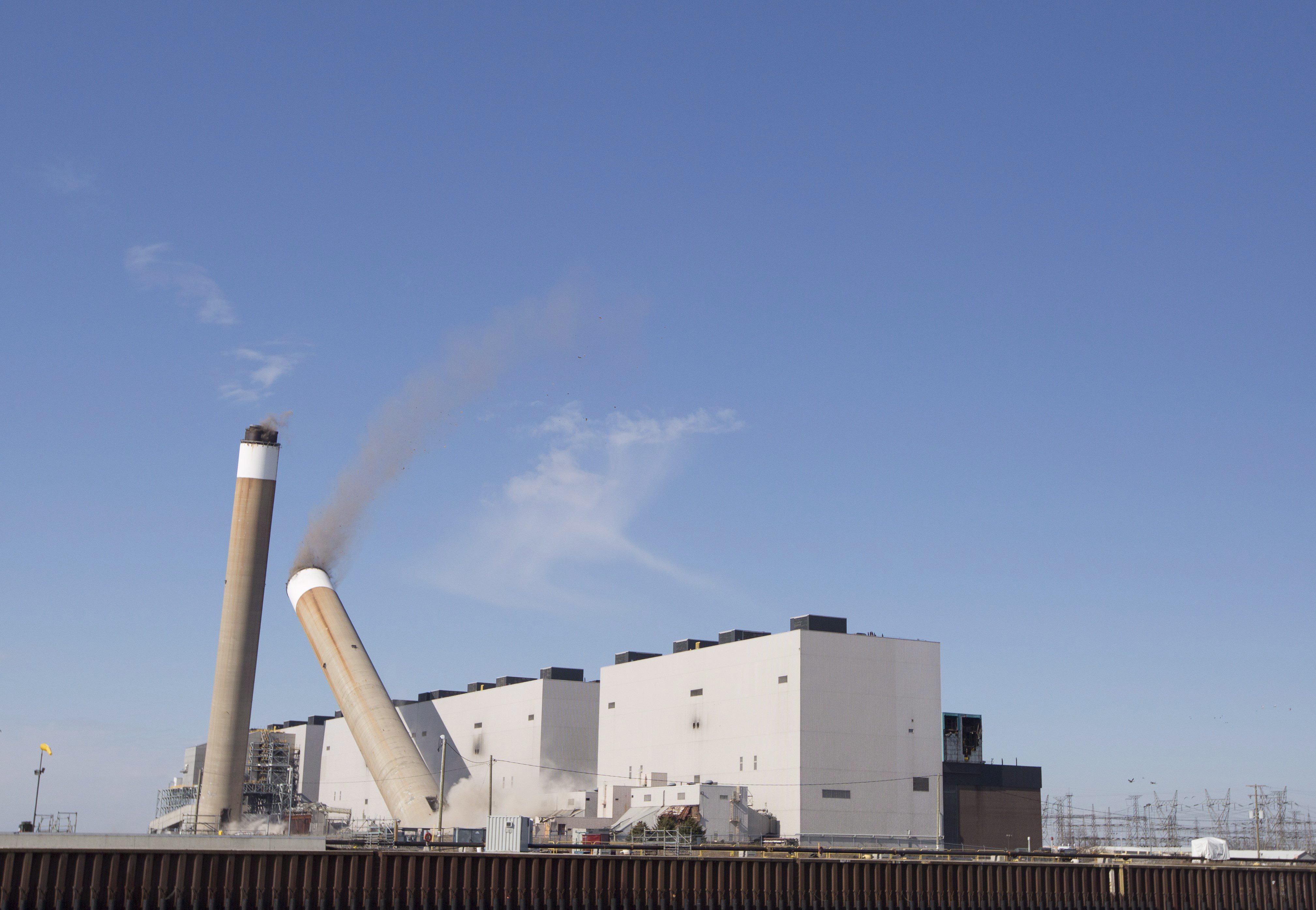 NANTICOKE, Ont. – Two giant coal smokestacks at a shuttered Ontario generating station were toppled today.