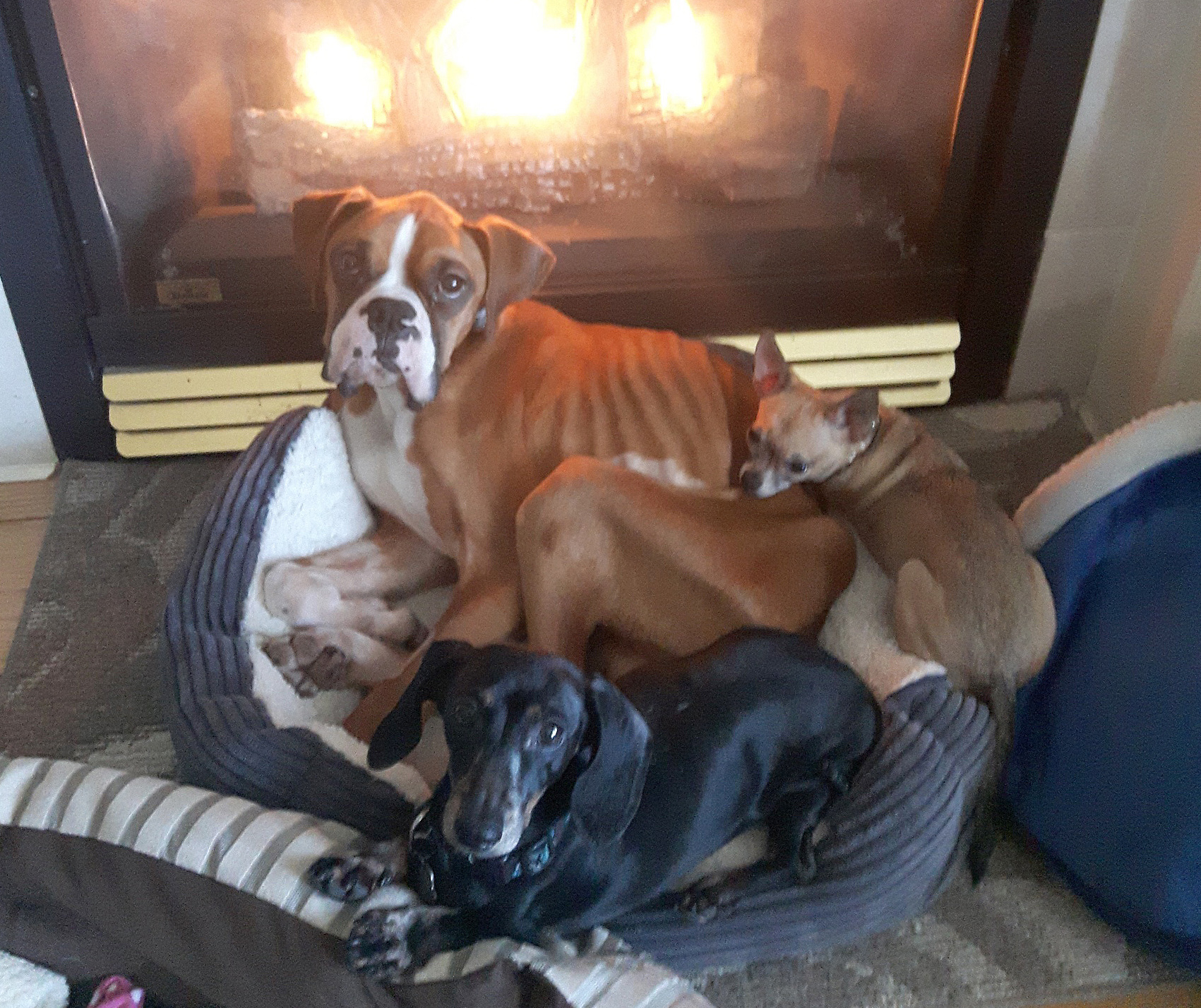 The boxer is still having problems keeping warm because he does not have enough body fat, and the BC SPCA is working with a nutritionist to help him get back to a healthy weight.