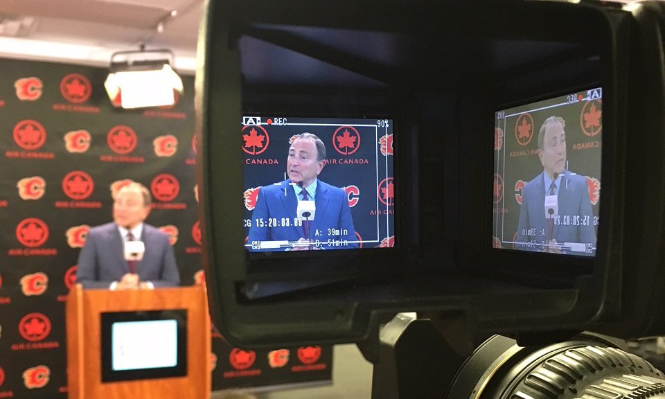Bettman spoke to reporters in Calgary as part of his Western Canadian tour.